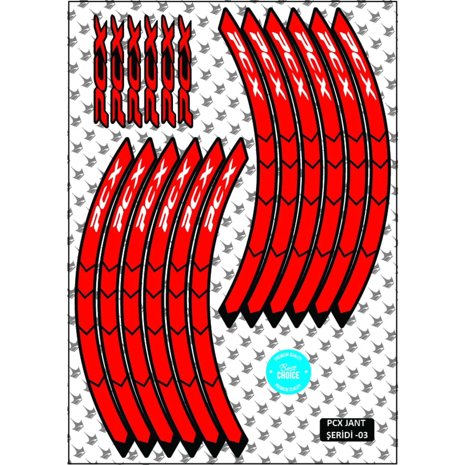 Honda PCX’in görünümünü daha sportif, daha agresif ve daha dikkat çekici hale getirmek istiyorsan bu kırmızı/beyaz yazılı jant şeridi seti tam senlik. PCX modellerine özel ölçülendirilmiş yapısıyla jantlarına kusursuz bir şekilde uyum sağlar.